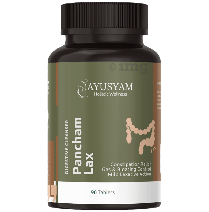 Ayusyam Pancham Lax Tablet is a formulation made with five herbs — Saunth, Saunf, Senna, Sendha Namak, and Haritaki. It can be used to support digestive health, maintain bowel regularity, and ease discomfort from constipation, gas and occasional bloating.