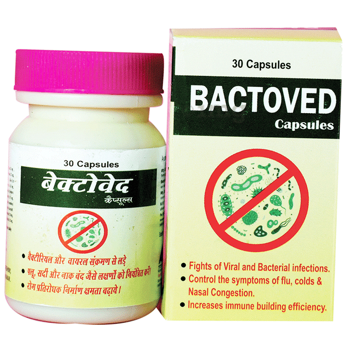 Bactoved Capsule is a blend of nature's most researched and potent immunity-boosting, anti-bacterial and herbal ingredients. It is effective in fighting viruses and bacterias that cause low immunity and several diseases.
