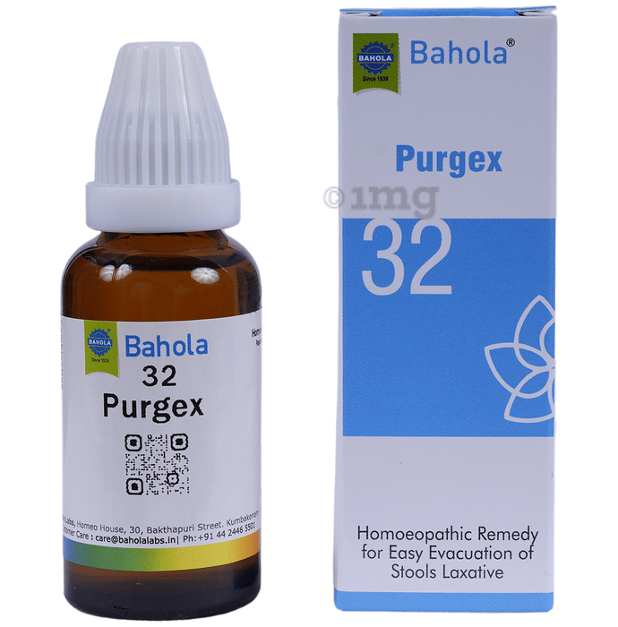 Bahola Oral Drops Purgex 32 is a homoeopathic formulation designed to support comfortable and natural bowel evacuation. This product contains a specialised combination of multiple homoeopathic ingredients that may work together to address functional constipation and related discomfort. With components that include Alumina, Bryonia, Nux Vomica, and Silicea, the formulation can assist the body’s natural rhythm in maintaining digestive balance and comfort. It is designed for both adults and children and can be considered as part of a daily routine for those experiencing occasional digestive unease. The ingredients can complement the natural processes involved in smooth and non-straining defecation.