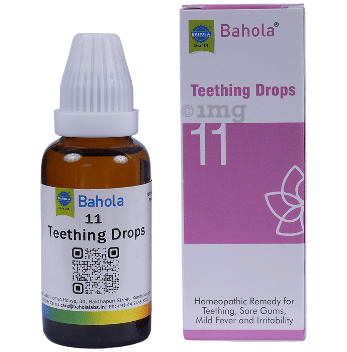 Bahola Teething Drops is a homoeopathic oral formulation designed to support infants and children during teething. It may help in maintaining comfort during teething episodes and can assist in managing irritability, gum discomfort, and mild associated symptoms such as restlessness or low-grade high body temperature.