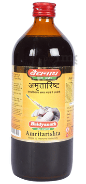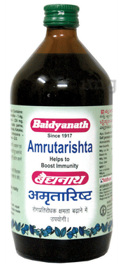 Baidyanath Amritarishta is a classical ayurvedic formulation harnessing the potent benefits of Amruta or Guduchi (Tinospora cordifolia) and other herbs that finds use in managing infections and reducing inflammatory reactions in the body. It helps balance vata and kapha dosha in the body and is beneficial in managing high body temperature, indigestion, various kinds of infectious disorders etc. Amritarishta contains about 5-8 % of self-generated natural alcohol in it. This self-generated alcohol and the water present in the formulation act as a medium to deliver water and alcohol-soluble active herbal components to the body.