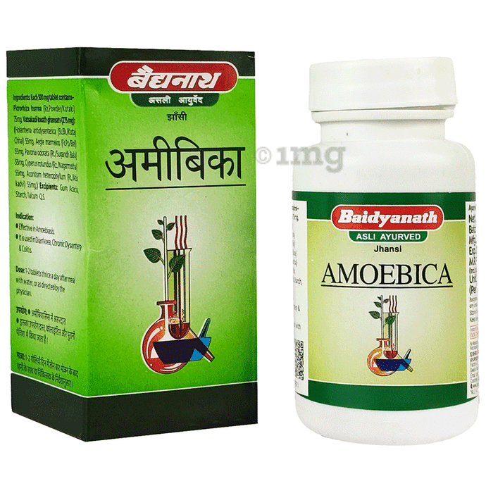 Baidyanath (Jhansi) Amoebica Tablet is a proprietary Ayurvedic medicine manufactured by Baidyanath Pharmaceuticals after years of research. It is an effective remedy for amoebiasis and is not known for any side effects. It is useful in chronic amoebic dysentery. Besides, Baidyanath Amoebica Tablets helps in Diarrhoea. It also gives relief from hemorrhagic dysentery.