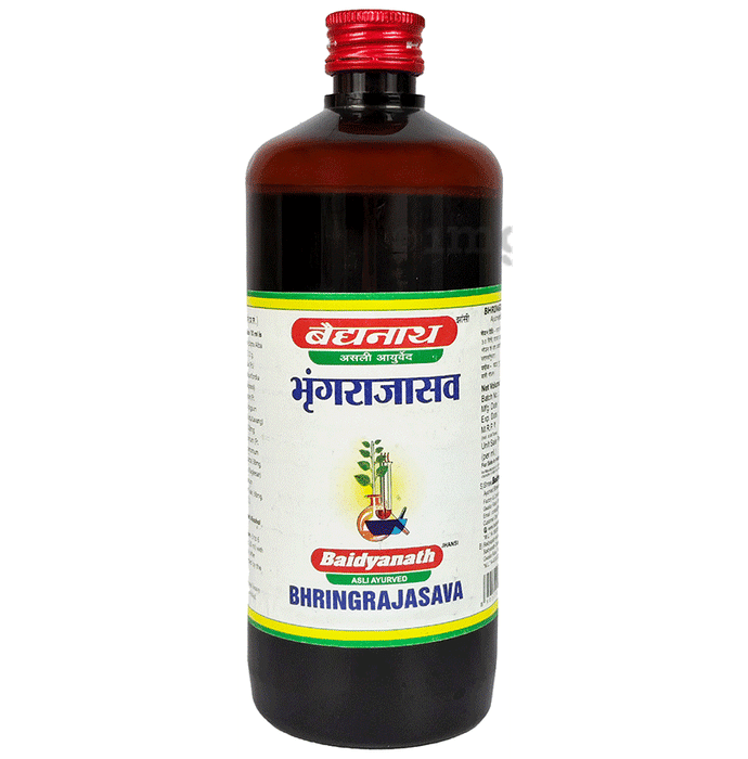 Baidyanath (Jhansi) Bhringrajasava is a polyherbal ayurvedic medicine containing bhringraj Ras (Eclipta alba), Chaturjaat, Haritaki, Pippali, Jatiphala and Jaggery. Traditionally it is prescribed for improving appetite, promoting digestion, and caters to hepatic and renal disorders.