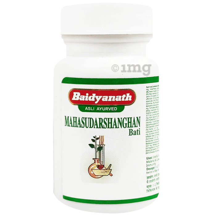 Baidyanath (Jhansi) Mahasudarshanghan Bati is classical ayurvedic medicine which is used to treat fever. This medicine is also useful in treating cold, cough, allergies and loss of appetite.