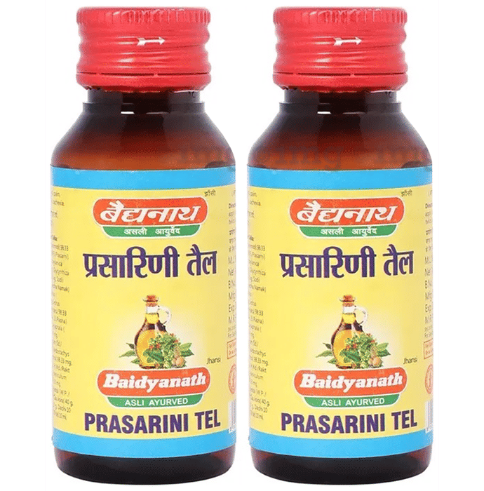 Baidyanath (Jhansi) Prasarini Tel is an ayurvedic oil, useful in easing symptoms associated with rheumatoid arthritis, sciatica, neck pain, stiffness, etc. It helps enhance blood circulation, providing relief from stiffness and discomfort. It is used for external applications.
