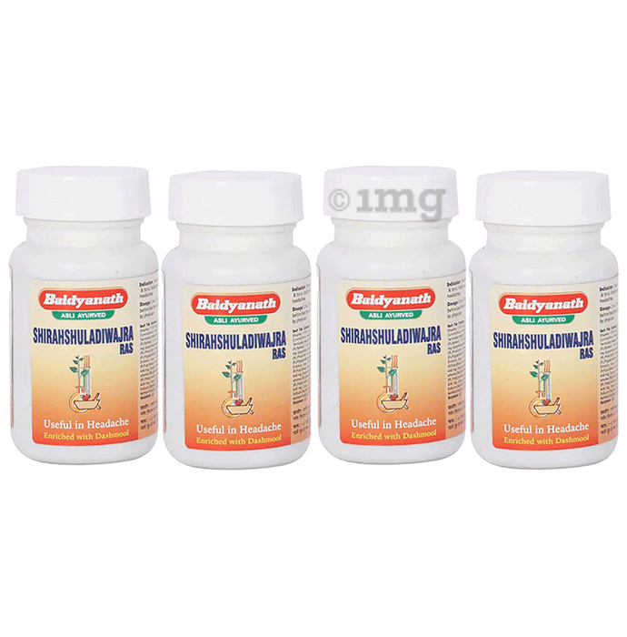 Baidyanath (Jhansi) Shirahshuladiwajra Ras Tablet (40 Each) is helpful to get relief of Shiroroga. It has its ayurvedic formulation, it can help to get relief from chronic headaches, migraines, and other types of headaches.