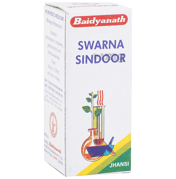 Baidyanath (Jhansi) Swarna Sindoor is an ayurvedic formulation made with natural sindoor (kumkum) made by a unique process. It can be useful in enhancing physical and mental alertness. It can also reduce the weakness of the body.