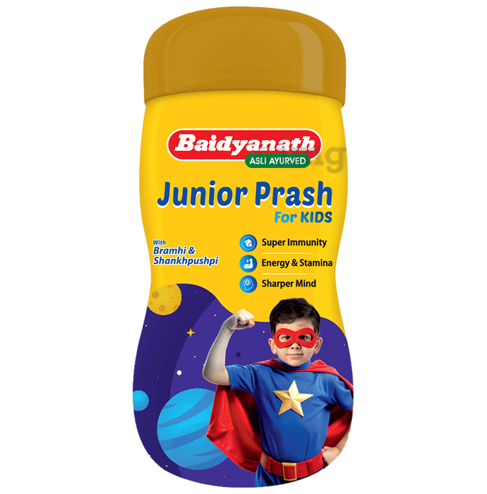 Baidyanath Junior Prash for the All Rounders Energy Immunity Strength is a specially formulated health supplement designed for growing children, enriched with natural vitamin C and calcium, making it suitable for year-round consumption. Unlike some products restricted to winter use, Baidyanath Junior Prash provides comprehensive health benefits, including immune support and memory enhancement. It incorporates traditional ingredients like brahmi, shankhpuspi, banslochan, amla, shankhpushpi, brahmi, banslochan, nagarmotha, and bhoomi amla, each contributing to the overall well-being of children. With a focus on immune health, cognitive function, and bone strength, Baidyanath Junior Prash aims to meet the specific needs of growing kids, ensuring a balanced and nutritious supplement.