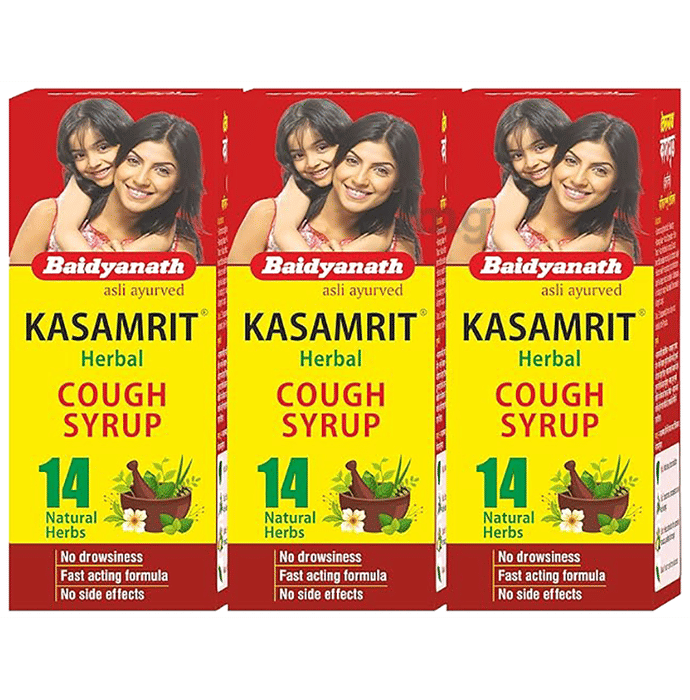 Baidyanath Kasamrita Herbal Cough Syrup (100ml Each) is an Ayurvedic medicine that helps relieve cough and sore throat easily and instantly. It is made with a non-drowsy herbal formula that is tough on cough with minimal side effects.