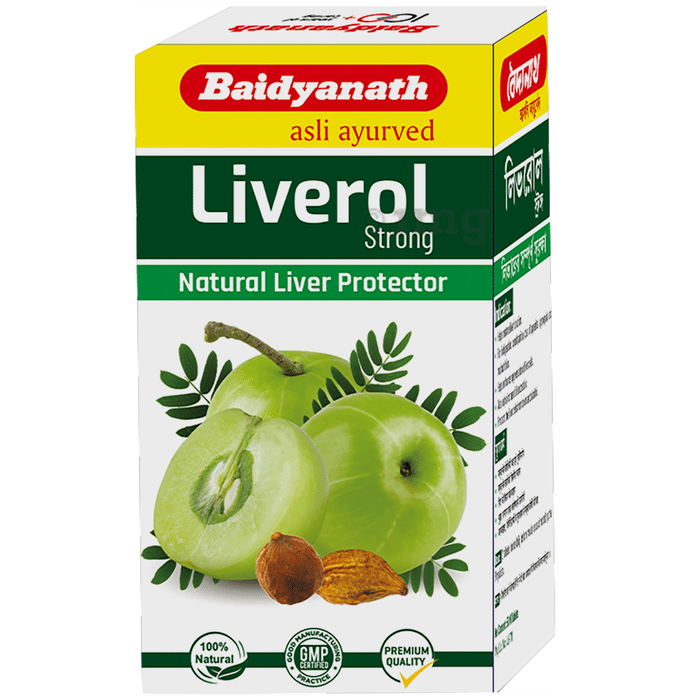 Baidyanath Liverol Strong Tablet is an ayurvedic medicine. It is a natural liver protector. This medicine is suggested for a wide range of liver health issues such as dyspepsia, gastric, hyperacidity, anorexia, and loss of appetite, hepatitis, dry / bleeding haemorrhoids, constipation and more. It is a very effective medicine for improving overall health condition of the user.
