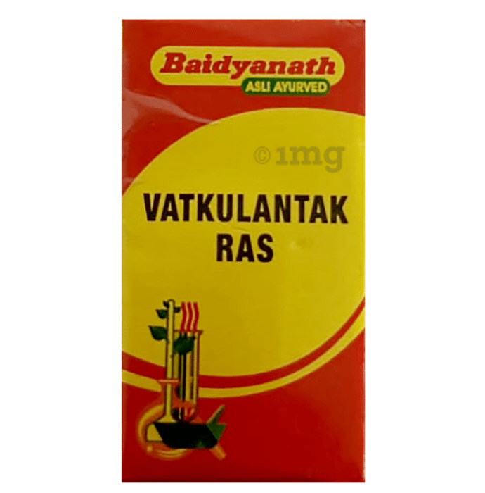 Baidyanath Vatkulantak Ras is a herbomineral Ayurvedic medicine which acts on the body by regulating blood circulation and strengthening nerves. It is an excellent remedy for disorders pertaining to the nervous system. Its heavy metal properties make it efficient on a number of diseases and other problems.