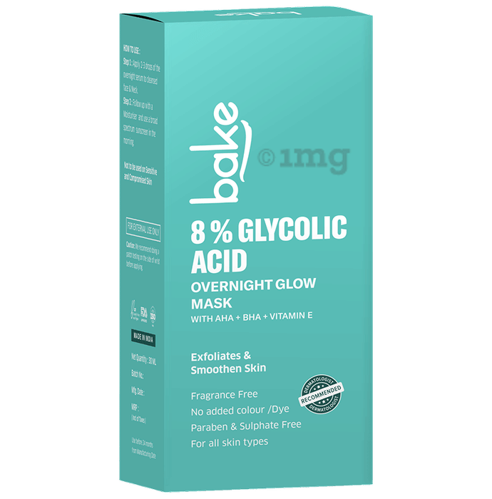 Bake 8% Glycolic Acid Overnight Glow Mask Bake 8% glycolic acid overnight peeling serum is scientifically formulated to transform your complexion while you sleep. Enriched with salicylic and lactic acid, the serum works tirelessly to improve uneven skin tone, providing a comprehensive pigmentation solution. By unclogging pores and reducing blackheads, it effectively clears congestion, leaving your skin feeling refreshed and renewed. Crafted for both women and men, the serum helps in achieving a smoother, more radiant complexion. Say goodbye to dull, uneven skin and hello to a revitalized, luminous glow with our glycolic acid overnight peeling serum.