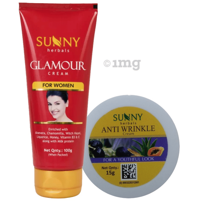 Sunny Herbals Glamour Cream for Women Cream with Sunny Herbal Anti wrinkle Cream 15gm Free is a unique blend of herbal ingredients, milk proteins and vitamins. It protects & deeply moisturizes the skin.