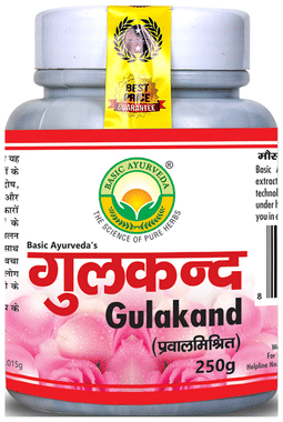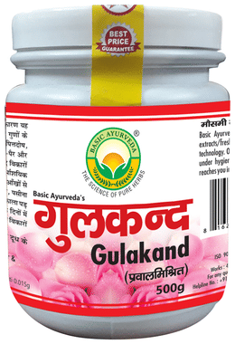 Basic Ayurveda Gulkand is a rose petal jam which is a powerful antioxidant and a good rejuvenator. It has cooling properties which help eliminate all heat-related problems like tiredness, lethargy, itching, aches and pains.