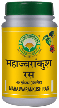 Basic Ayurveda Maha Jwarankush Ras Tablet is an Ayurvedic tablet formulated for use in symptoms of fever and related conditions like respiratory discomfort, nausea, burning sensations, stomach pain, body pain and gastritis.