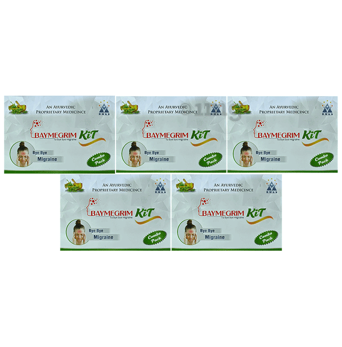 Baymegrim (200gm Each) Kit contains tablets, nasal oil and roll-on. It is enriched with brahmi, lindpipi, turmeric and saunth.