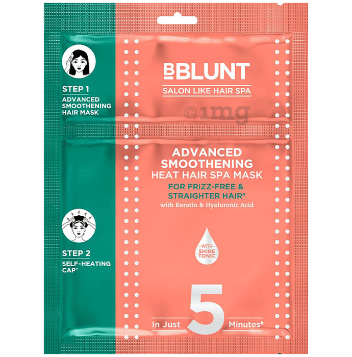 Bblunt Advanced Smoothening Heat Hair Spa Mask with Keratin & Hyaluronic Acid is an innovative at-home hair care solution designed to deliver salon-like results in just five minutes. This advanced 2-step system includes a hair mask and a self-heating cap, combining the power of Keratin, Hyaluronic Acid, and Shine Tonic to nourish, hydrate, and transform your hair. Specially crafted for Indian hair, it can provide smooth, frizz-free, and manageable hair while adding a glossy shine. Experience a luxurious spa-like treatment in the comfort of your home with this easy-to-use hair mask.