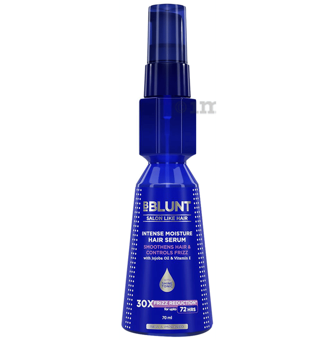 Bblunt Intense Moisture Hair Serum is a revolutionary hair care solution designed to provide frizz-free, smoother, and shinier hair effortlessly. Enriched with Vitamin E, Jojoba Oil, and infused with a signature Shine Tonic, this advanced serum can nourish and hydrate hair, easing frizz by up to 30 times for as long as 72 hours. It offers 31 times smoother hair in just one use, making it perfect for Indian hair textures. The lightweight formula does not weigh down your tresses, delivering a glossy finish for everyday styling. Specially formulated to suit the needs of Indian hair, this serum is cruelty-free and colour-safe, ensuring a safe and effective hair care experience.