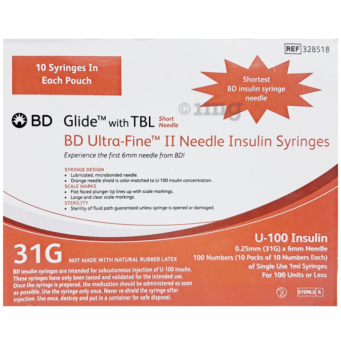 BD Insulin Syringes with BD Ultra-Fine Needle 100U 31G 6MM | Diabetes Monitoring Devices