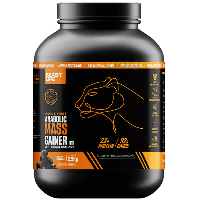 BeastLife Anabolic Mass Gainer with Cereal Extract Belgian Chocolate is a high-calorie nutritional supplement thoughtfully developed to support natural weight gain, muscle nourishment, and energy replenishment. Its precise formulation includes a blend of protein, carbohydrates, cereal extract, essential micronutrients, and functional performance ingredients such as creatine, L-glutamine, and UltraSoar Tech™. This mass gainer powder, free from maltodextrin, may serve as a clean and easy-to-digest source of balanced calories for individuals looking to support their fitness routines and overall dietary intake. The chocolate flavour and rich calorie profile make it suitable for athletes, bodybuilders, or anyone aiming to increase their mass and daily nutritional intake effectively.