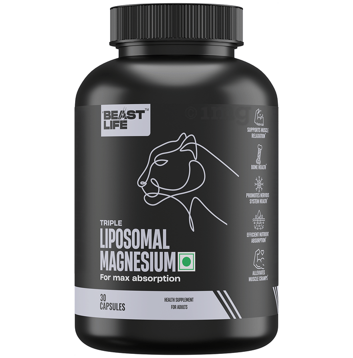 BeastLife Triple Liposomal Magnesium for Max Absorption Capsule is a nutraceutical formulation designed with a triple-form magnesium complex—Magnesium Glycinate, Magnesium Oxide, and Liposomal Magnesium Oxide—that can help support muscle function, nervous system health, and relaxation. This combination can help the body maintain electrolyte balance, support bone health, and assist in optimal nutrient absorption. Its liposomal technology allows better magnesium utilisation and comfort for daily wellness support.