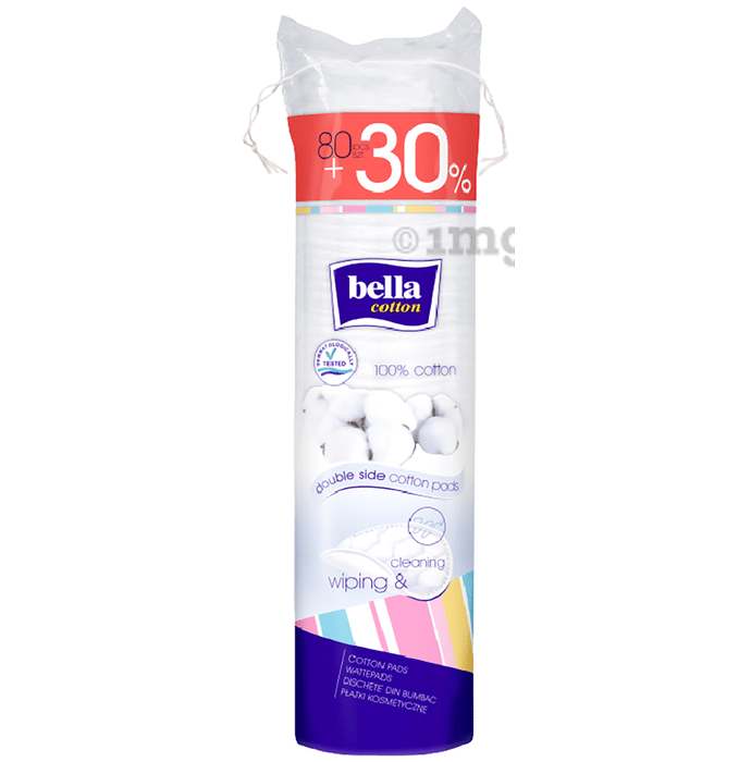 Bella Cotton Pads 80 Pcs 30% Free offers premium quality cotton pads made of 100 per cent clean, soft and natural cotton fibres to ensure superior absorption and safety. It is dermatologically tested and is ideal to gently cleanse and dry the skin.