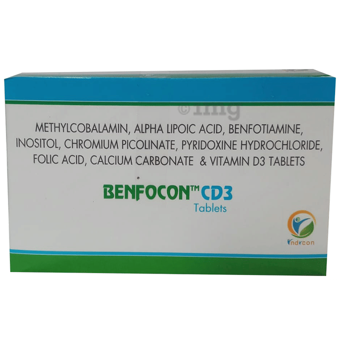 Benfocon CD3 Tablet is a multivitamin tablet fortified with antioxidant and neuroprotective properties. It helps protect the body from free radical damage and supports the overall well-being of the body. It is a combination of alpha-lipoic acid, folic acid, methylcobalamin, pyridoxine, folic acid, etc as the prime ingredients. It helps reduce weakness