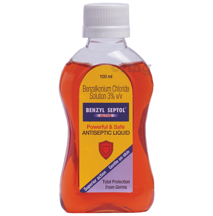 Benzyl Septol Active Antiseptic Liquid is a versatile and effective antiseptic solution designed for complete hygiene and protection. Formulated with Benzalkonium Chloride Solution 3% v/v, it offers superior antiseptic properties, making it ideal for multiple uses ranging from personal care to household cleaning. Its powerful formulation ensures effective sanitisation of wounds, cuts, and abrasions while being gentle on the skin. Completely water-miscible, non-alcoholic, and non-inflammable, this antiseptic liquid may provide total protection from germs and bacteria, safeguarding the well-being of your family.
