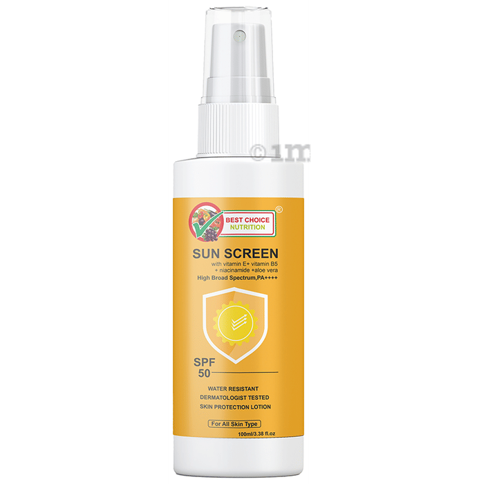 Best Choice Nutrition Sunscreen SPF 50 PA++++ is a water-resistant sunscreen that can help protect the skin from the harmful UV rays of the sun. It is enriched with the goodness of vitamin E, vitamin B5, niacinamide and aloe vera. The sunscreen can help provide high broad spectrum SPF 50 PA ++++ protection.