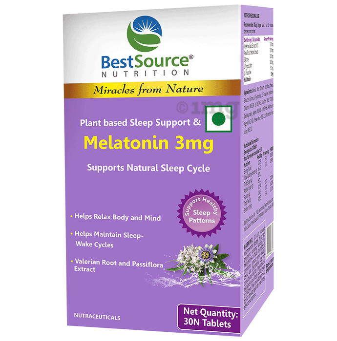 BestSource Nutrition Melatonin 3mg Tablet is a plant-based sleep support formula designed to help manage occasional sleeplessness and improve overall sleep quality. Enriched with a scientifically backed blend of melatonin, herbal extracts, amino acids, and calming agents, this supplement aims to support natural sleep cycles, relaxation, and manage stress.