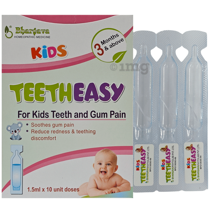 - Bhargava Teeth Easy is beneficial for reducing gum pain, swelling and redness while teething in kids. It contains Chamomilla Matricaria which has soothing properties and helps in reducing pain in gums.