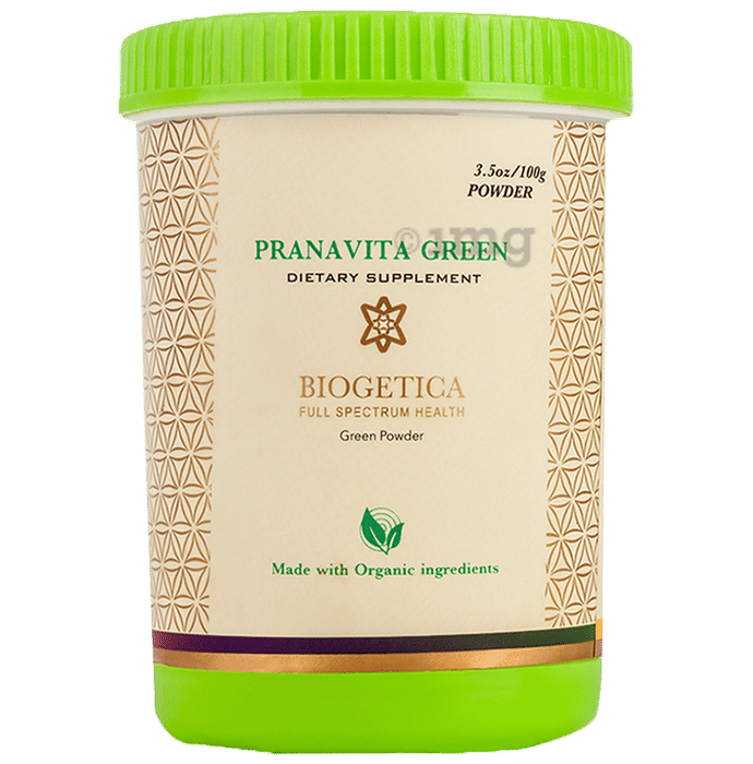 Biogetica Pranavita Green Powder is the harmonious blend of various organic ingredients that promote the 5 elemental balance needed to help the body stay healthy. The doctors and phytochemist at Biogetica have endeavoured to create PranaVita Green a raw, vegan, gluten-free advanced ayurvedic formula that is a balanced, alkalizing therapeutic superfood complex for full-spectrum nourishment. Pranavita Green has been formulated to nourish, cleanse and protect the body. To begin with, Pranavita is a blend of rich nutritional ingredients derived from 100% natural and wildcrafted antioxidant and adaptogenic herbs. Each ingredient has been carefully chosen to ensure maximum potency and bioavailability and then blended together in a manner that ensures that the final formula is way beyond the individual action of a single component. The formulation is an excellent combination of natural elements that work synergistically to support the immune system, nourish each and every organ of the body and promote optimal functioning of the various mechanisms in the body. The formula also promotes a deep cleanse and may help to balance the weight.