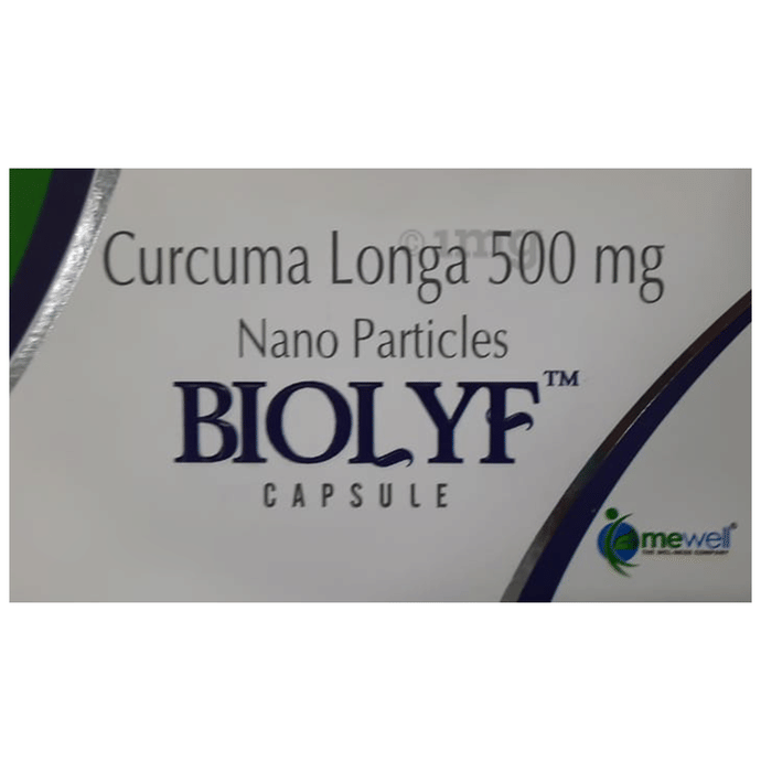 Biolyf Capsule is an Ayurvedic formulation featuring nano-particles of Curcuma longa (Turmeric) extract at a strength of 500 mg per capsule. Curcuma longa possesses bioactive compounds, particularly curcuminoids, which may support the bodyβs natural response to internal discomfort, irritation, and mild swelling. This nano-particle format is designed to help the extract interact more efficiently with the bodyβs systems. It may be suitable for individuals experiencing seasonal sensitivities, mild body aches, or day-to-day allergic responses due to environmental or dietary triggers. It is commonly considered as part of holistic wellness regimens that aim at managing minor joint stiffness, general inflammation, and pain arising from routine physical exertion or sensitivity.
