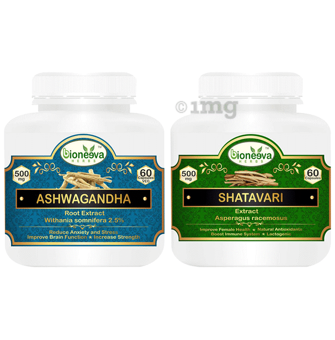 Bioneeva Herbs Combo Pack of Ashwagandha & Shatavari Veg Capsule (60 Each)