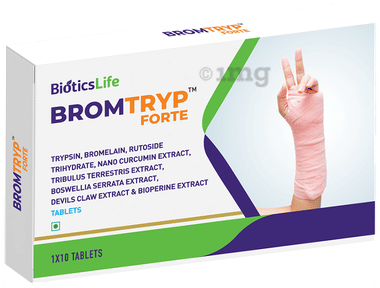 Bromtryp is a unique combination of oral enzyme therapy with added benefits of phytoactives having proven effectiveness in acute injuries, sports injuries, pre and post-surgery incisions, hematoma, and degenerative joint conditions. Its benefits are attributed to pain-relieving and anti-inflammatory actions in rheumatic and degenerative conditions. Trypsin, bromelain and rutoside combination has been proven to be a safer alternative for several NSAIDs. The addition of Turmeric, with 95% curcumin, higher than many other brands, make it highly potent. Get the right formulation that synergises the strengths of phytoactives to take away your pain and heal your wounds faster!