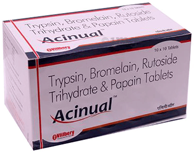 Trypsin BP 48mg,Bromelain 90mg,RutosideTrihydrate 100mg,Curcuma Longa Extract (95%) 100mg