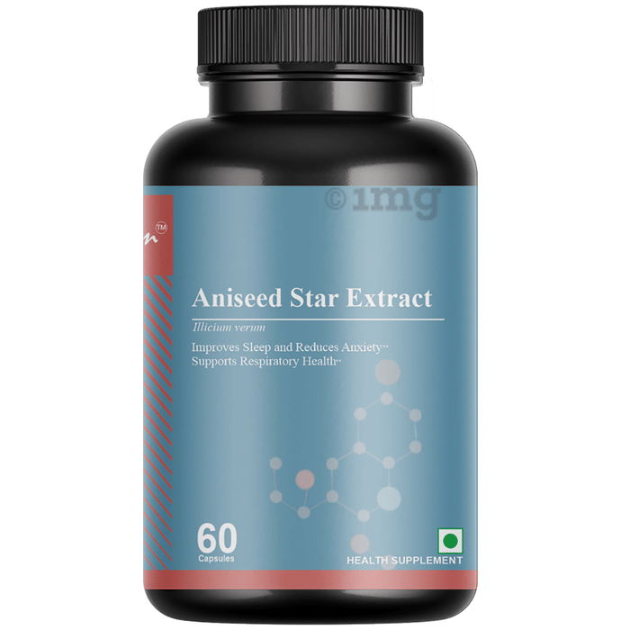 Bioven Aniseed Star Extract Capsule is a nutraceutical supplement formulated with 500 mg of Star Anise (Illicium verum) extract per capsule. Star Anise is known for its aromatic and plant-based compounds that may assist with relaxation and respiratory comfort. It may help support sleep quality and stress management when used as part of a calm evening routine. The extract also contains phytonutrients with expectorant-like properties, which may help maintain respiratory wellness by supporting mucus clearance and airway comfort.