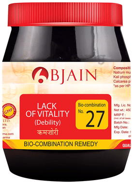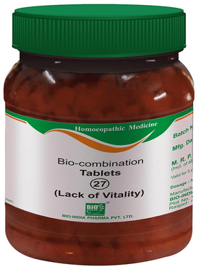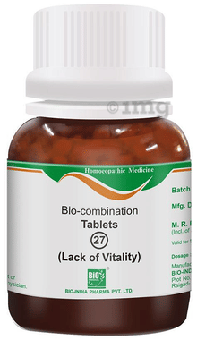 Bjain Bio-Combination No. 27 Tablet is a homoeopathic medicine that is useful in the treatment of weakness and debility. Bio combination 27 contains a balanced combination of essential bio-chemic salts which help in maintaining optimum electrolyte balance and vitality in our body. It is also effective in the treatment of lassitude and premature ejaculation.