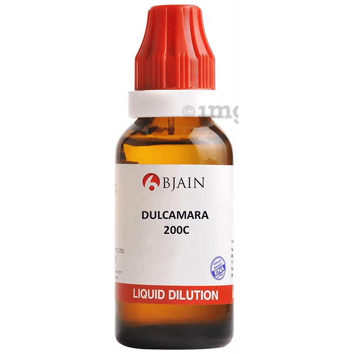 Bjain Dulcamara Dilution is a homeopathic remedy which has several health benefits. It is primarily useful in the treatment of jaundice, pneumonia, psoriasis, eczema, cramps, asthma and amenorrhea. It is also useful for the treatment of rheumatism and arthritis.