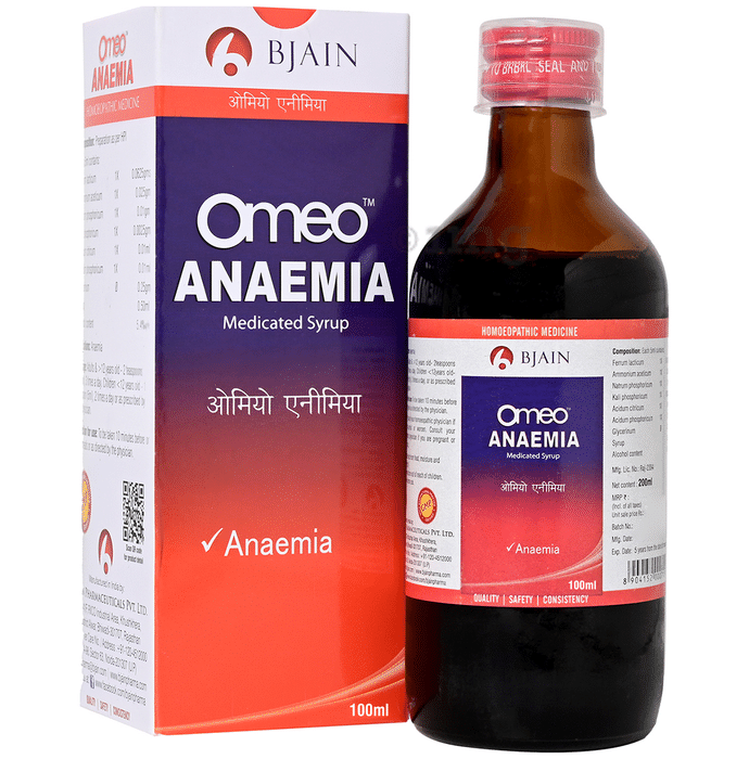 Bjain Omeo Anaemia Syrup is a homeopathic medicine, used primarily to manage disorders associated with anaemia, weakness, fatigue and exhaustion caused due to Iron deficiency. It helps manage anaemia due to blood loss and can be used to meet the increased demand of Iron in pregnancy.