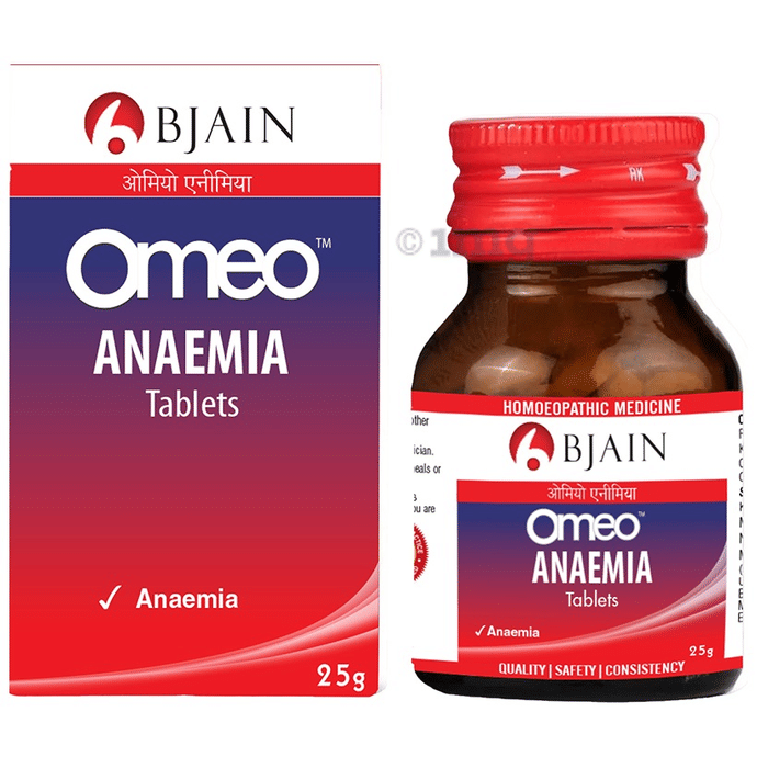Bjain Omeo Anaemia Tablet helps deal with anaemia. Anaemia causes improper oxygenation of the tissues resulting in pallor, easy fatigue, dyspnoea, palpitation, headache, dizziness, anorexia, gastric disturbances, menstrual dysfunctions etc. According to WHO, either the red blood cells or their oxygen-carrying capacity is reduced to a level that fails to meet the body's physiologic needs, which vary according to age, sex, altitude, smoking and pregnancy status. Iron deficiency is believed to be the most common cause of anaemia globally. However, folate, vitamin B12, and Vitamin A deficiencies, chronic diseases, worm infestations and inherited disorders like sickle cell anaemia and thalassemia are also prominent causes of anaemia.