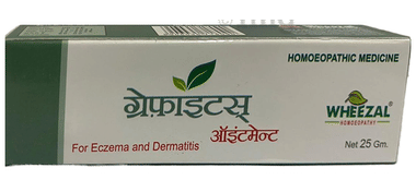 Bjain Omeo Graphites Ointment is a specialised formulation with Graphites prepared as per Homoeopathic Pharmacopoeia of India standards. It supports skin conditions such as eczema, dermatitis, itching, and oozing discharge. The ointment base ensures optimal absorption and therapeutic action. It follows HPI guidelines strictly and is manufactured in a GMP-certified facility which is Drugs and Cosmetics Act 1940 compliant. Suitable for chronic skin complaints under qualified practitioner supervision and usage. The rich base promotes deep penetration and healing.