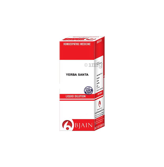 Bjain Yerba Santa Dilution is a homoeopathic medicine formulated with natural herb yerba sant, traditionally used as a supportive remedy for chest congestion and respiratory comfort. It also supports the elimination of waste products from the body and purifies blood.