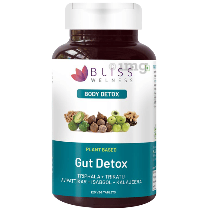 Bliss Welness Body Gut Detox Plant Based Veg Tablet is a plant-based Ayurvedic formulation crafted with a synergistic blend of traditional botanicals like Triphala, Trikatu, Isabgol, Kalajeera, and Avipattikar Churn. The formulation can support gut cleansing, metabolic balance, and digestive comfort when used as part of a balanced routine. It may also help maintain relief from acidity and reflux while supporting overall gastrointestinal well-being. Designed as a natural daily supplement, it can contribute to detoxification, nutrient assimilation, and long-term digestive balance in a safe and effective manner.