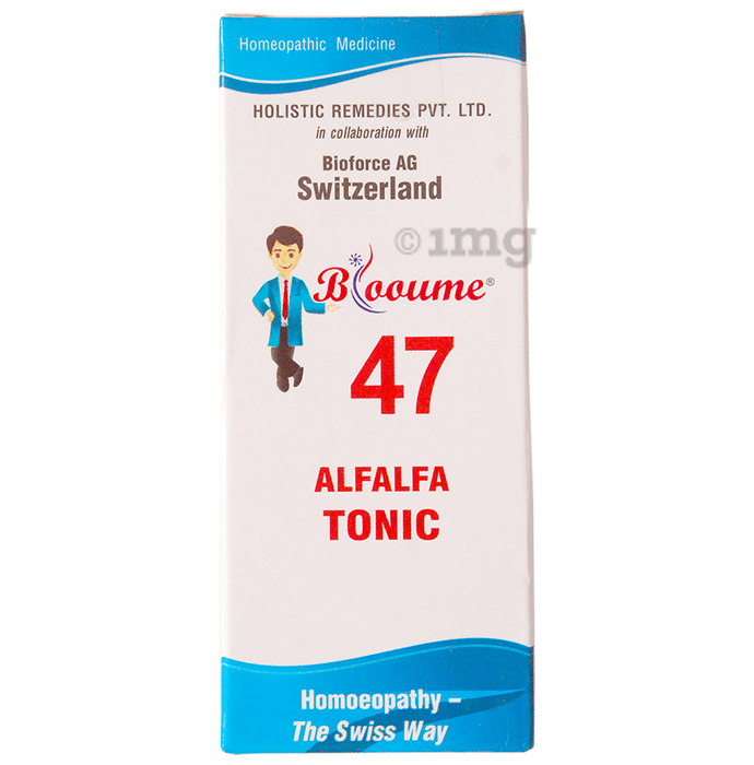 Blooume 47 Alfalfa Tonic is a homoeopathic formulation developed in collaboration with Bioforce AG, Switzerland. It is a general tonic that may help support overall health and vitality, with key ingredients that may contribute to energy restoration and improved bodily functions.