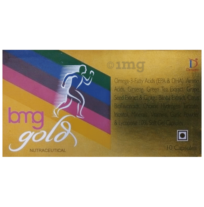 - Bmg Gold Soft Gelatin Capsule supports overall wellness. It contains Green tea extract which is rich in antioxidants. It also contains Ginseng.