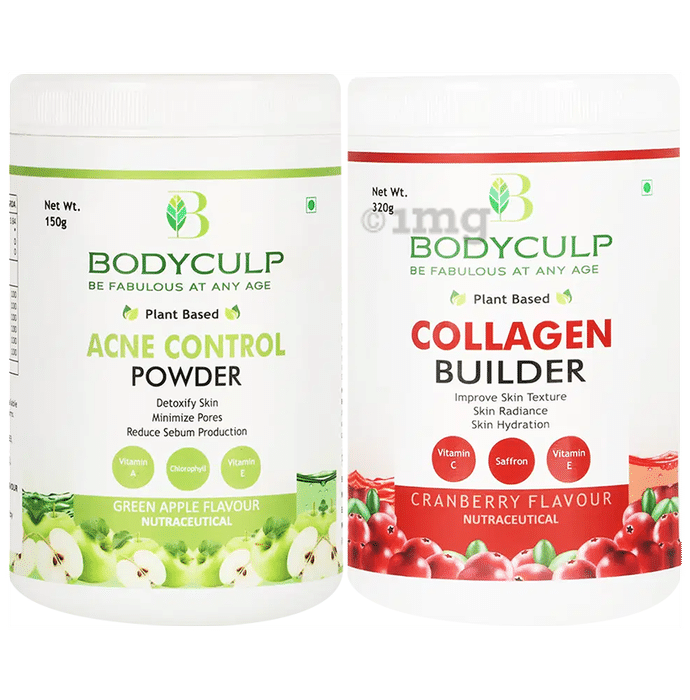 Bodyculp Combo Pack of Collagen Builder Powder Cranberry Flavour (320gm) & Plant Based Acne Control Powder Green Apple Flavour (150gm)