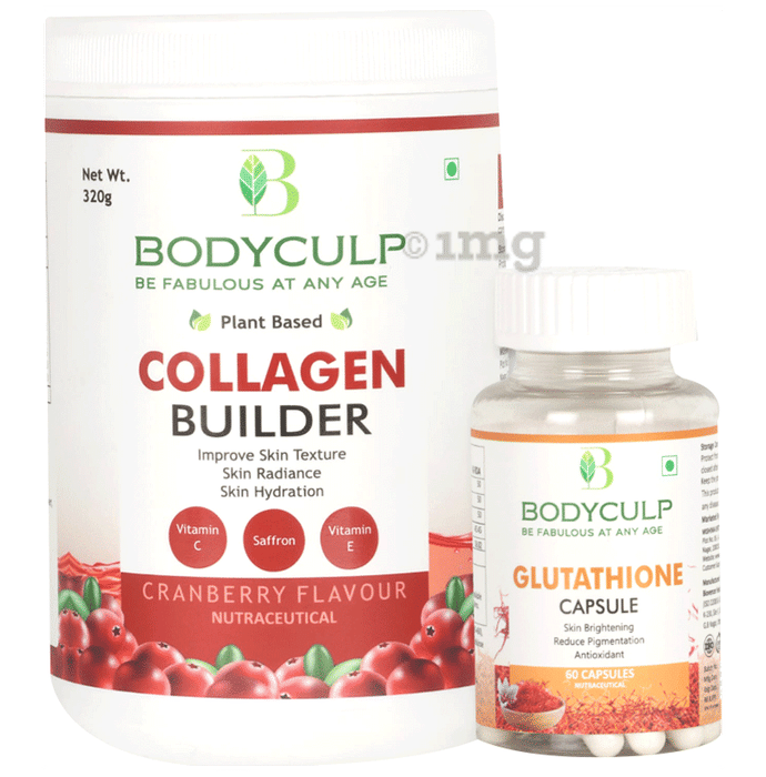Information about Bodyculp Combo Pack of Plant Based Collage Builder Powder Cranberry Flavour (320gm) & Glutathione Capsules (60 Each)