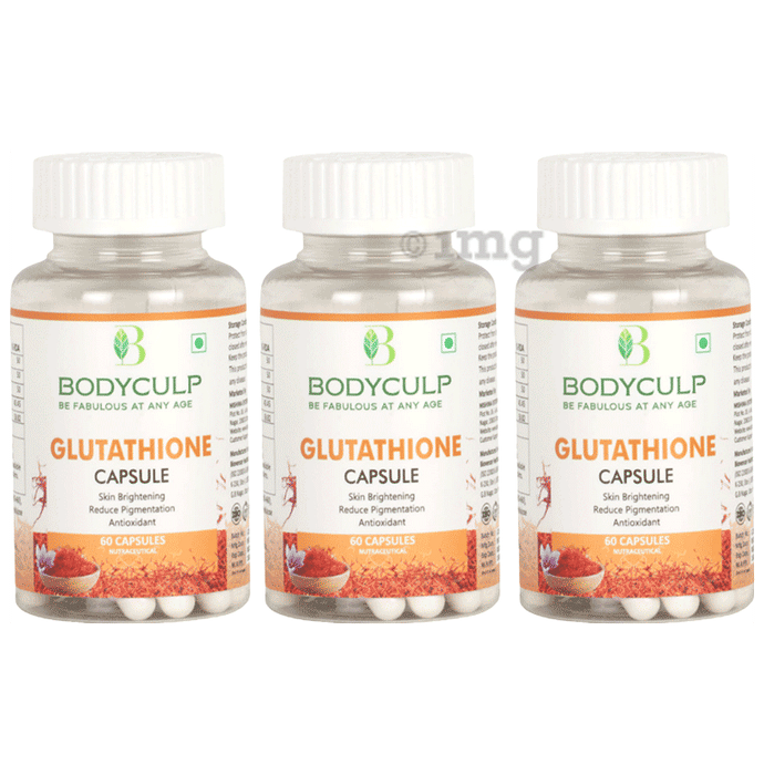 Bodyculp Glutathione Capsules is a formulation that helps to brighten and lighten the complexion. It reduces dark spots and prevents hyperpigmentation. The formula inhibits melanin production and provides antioxidant support. It helps to protect the skin from free radical damage. It helps to nourish and moisturise your body to make it smoother and light. The formula is suitable for all skin types and does not contain harmful ingredients.