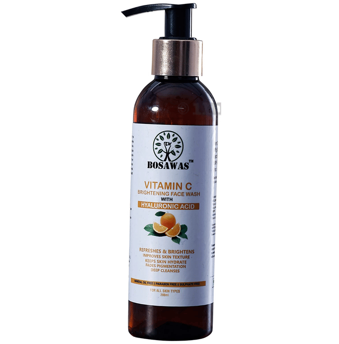 Bosawas Vitamin C Brightening Face Wash with Hyaluronic Acid is enriched with the goodness of vitamins C and E. This face wash can help to give your skin a natural glow. It can help to maintain a healthy skin texture. This face wash may help eliminate excess oil and dirt from your face. This face wash does not contain harsh ingredients, such as sulphates and parabens.